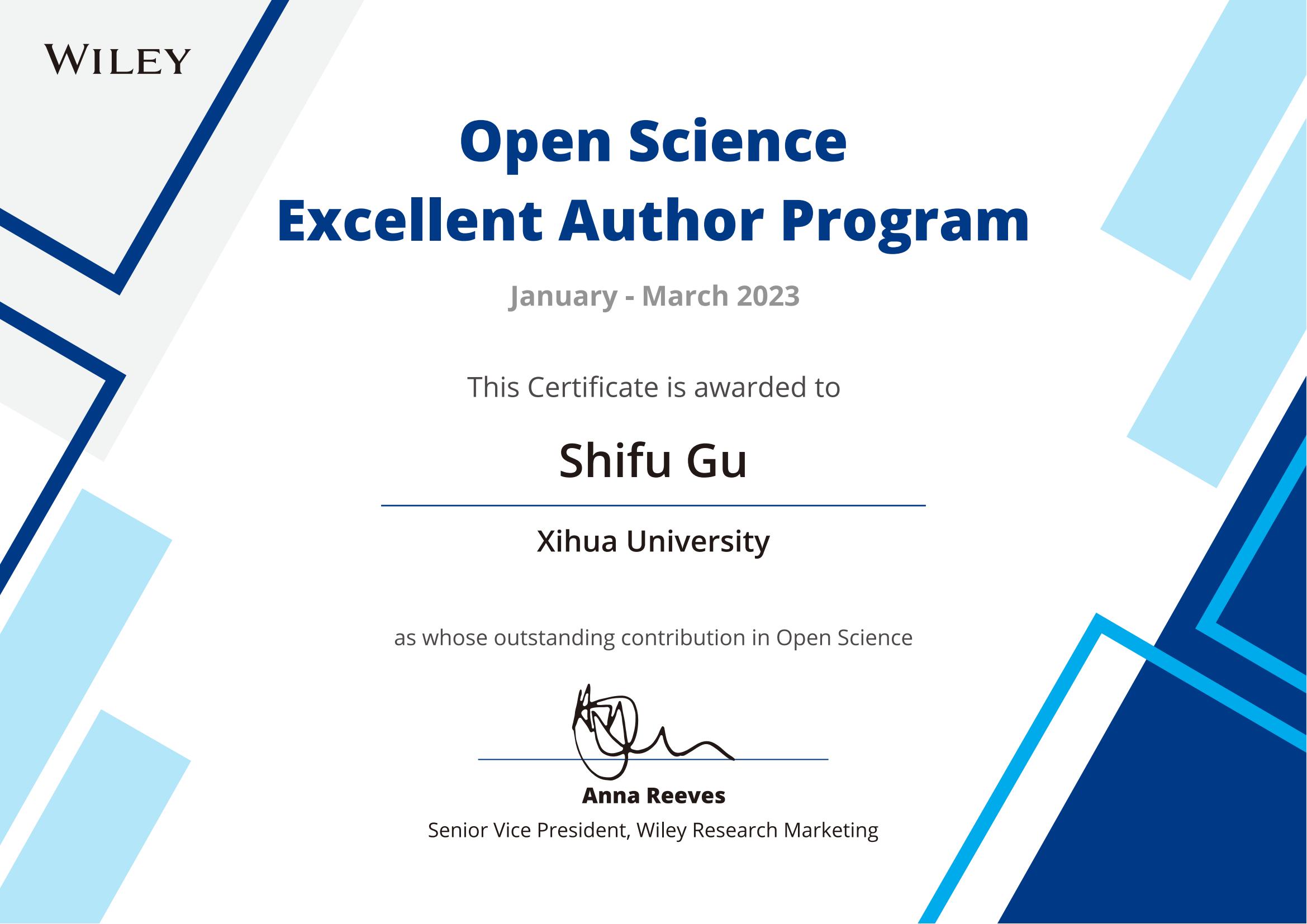 近日,电气与电子信息学院范镇南教授研究团队荣获2023年第一季度“Wiley威立中国开放科学高贡献作者奖”。