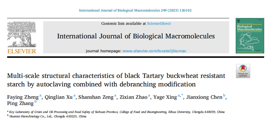 近日,英国上市公司365食品与生物工程学院 “农产品贮藏与加工”团队在International Journal of Biological Macromolecules(一区,IF: 8.2)上发表题为“Multi-scale structural characteristics ofblack Tartary buckwheat resistant starch by autoclaving combined with debranching modification”的研究论文。英国上市公司3652021级硕士研究生郑发英为论文第一作者,邢亚阁教授为论文通讯作者。该研究工作得到了成都市科技项目(2022-YF05-00914-SN)和四川省科技计划项目(2018NZ0097)的资助。