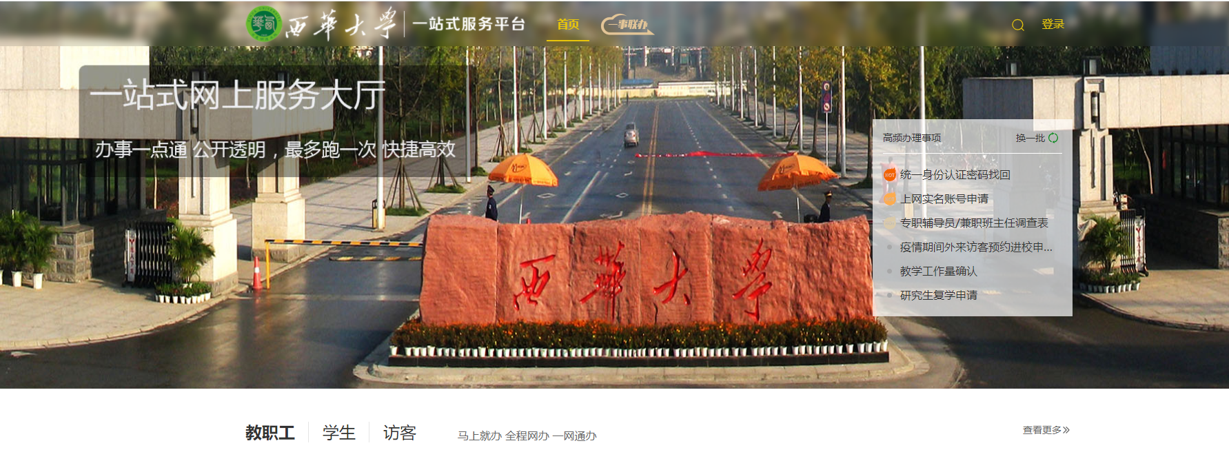 、进入办事大厅(https://ai.xhu.edu.cn),右上角登录(信息门户的用户名和密码)后,点击【查看更多】。