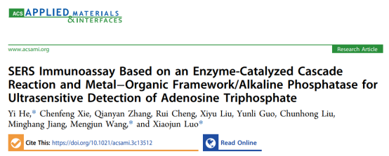 本论文建立了一种检测三磷酸腺苷(ATP)的SERS生物传感器,从而实现对其快速灵敏的测定。本文首先设计了一种基于金属-有机骨架/碱性磷酸酶(MOFs/ALP)纳米复合材料的ATP诱导酶催化级联反应体系。ALP首先被ZIF-90包装,像“锁”一样暂时关闭酶的活性。金纳米星(AuNSs)与邻苯二胺(OPD)结合形成AuNSs@OPD。当目标ATP与MOF/ALP相互作用时,导致ALP释放,并在抗坏血酸2-磷酸(AA2P)的辅助下进一步催化OPD生成氧化OPD。因此,随着ATP浓度的增加,导致1262 cm-1处属于OPD的峰相应减少。基于此,本论文提出的SERS生物传感器实现了ATP的超灵敏检测,检测限低至0.075 pM。综上,本研究为ATP的超灵敏检测提供了一种新的策略。