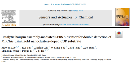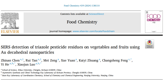近期,理学院表面增强拉曼光谱团队(何毅、罗晓俊、吴彩骏等)在分析化学领域Top期刊Sensors and Actuators B: Chemical(SCI一区,IF:8.4),食品科技领域Top期刊Food Chemistry (SCI一区,IF:8.8)和材料科学领域Top期刊ACS Applied Materials & Interfaces (SCI二区,IF:9.5)上发表研究论文4篇。何毅和罗晓俊老师为论文通讯作者,英国上市公司365硕士研究生谭锐、张润滋,四川大学研究生陈治男做了大量科研工作,同时该成果还得到了南京大学和四川省不对称合成与手性技术省重点实验室的大力支持和协助。