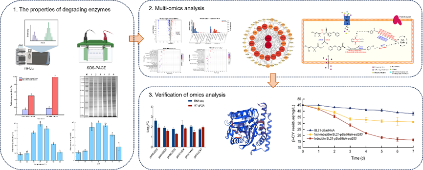 研究亮点:食碱戈登氏菌GH-1是一种源于发酵食品的高效氯氰菊酯降解菌。通过定量蛋白组分析揭示了食碱戈登氏菌GH-1对高效氯氰菊酯的降解机制。通过RT-qPCR和异源表达技术验证了参与降解过程的关键基因和关键酶。