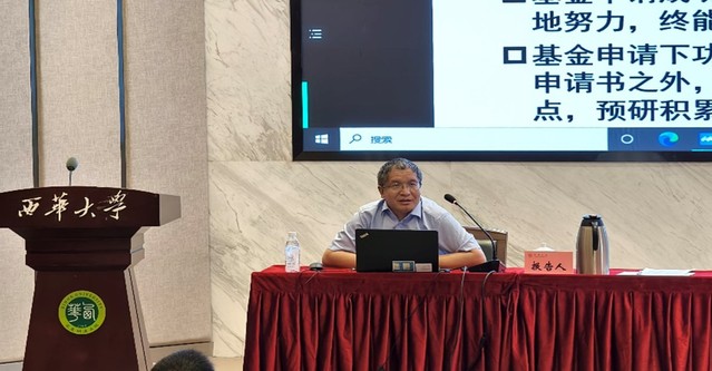 傅强教授为大家呈现了一场精彩的申报辅导报告。报告中,傅强教授详细阐述了申请书的撰写技巧及各项要求,特别强调了选题和立项依据的关键性。报告内容丰富、详实,对学校基金申报工作以及国家自然科学基金的申请人提供了极大的启示与指导,必将有效地推动我校基金申报工作的发展。