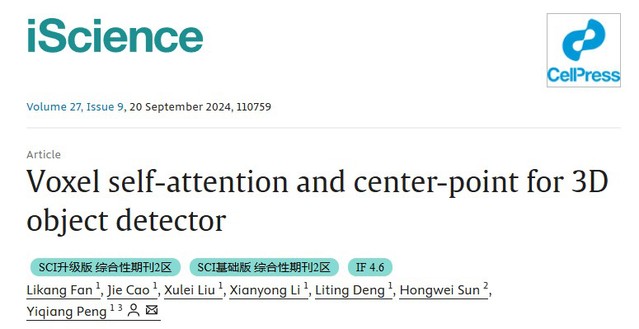 由于目前大多数基于体素的激光雷达目标检测算法采用的是3D卷积神经网络去捕获空间特征,极大的限制了空间中点云全局信息的表达。因此,研究者提出了一种体素自注意力辅助网络去弥补这一缺陷并取得了较好的效果。同时,为了将空间信息传递到特征通道层次,研究者在PV-RCNN算法中引入了通道注意力和空间注意力机制。相关论文已发表在CSCD核心期刊《激光与光电子学进展》上。在基于点的目标检测方法中尝试了仅使用Transformer编码器去构建点云关系并取得了较好的效果,该方法在北大核心期刊《应用激光》上发表。以上三篇论文的第一作者均为硕士研究生曹捷,导师彭忆强教授,樊利康为通讯作者。