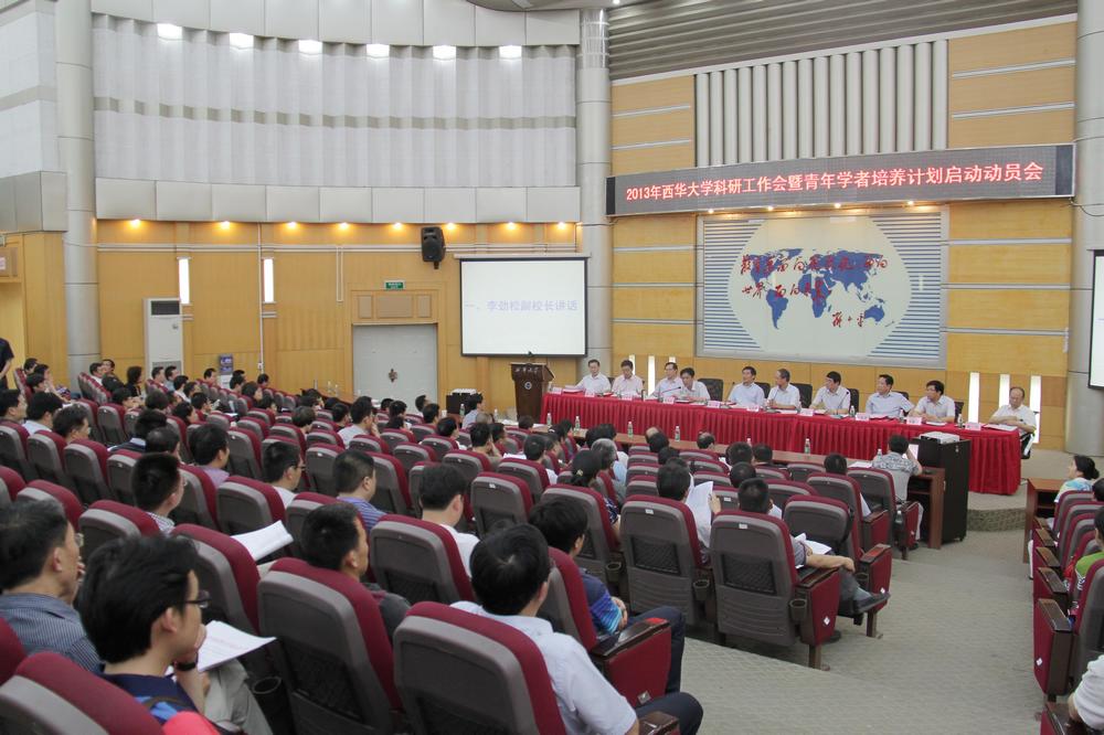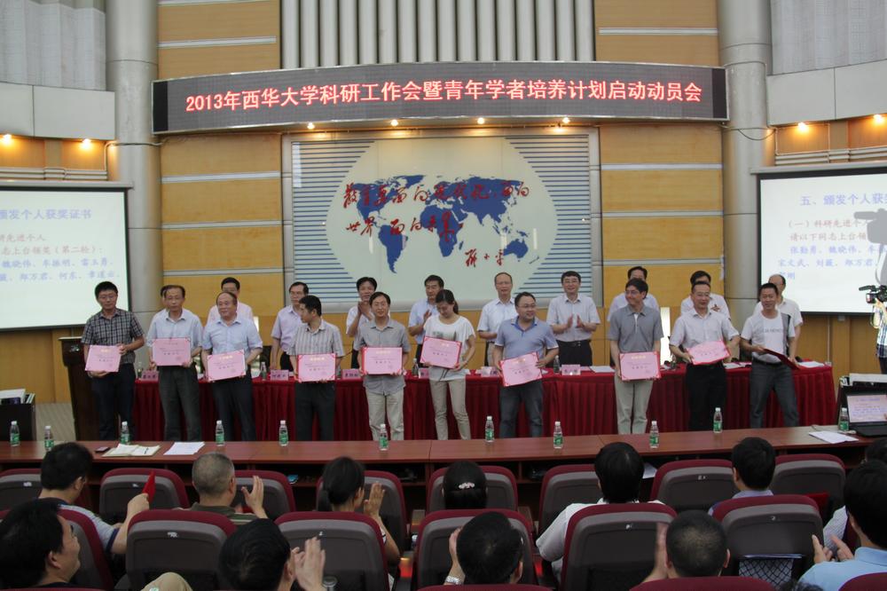 6月6日下午3:00,学校在四教报告厅召开了2013年科研工作大会暨青年学者培养计划启动动员会。会议总结了学校近年来科研工作取得的成绩,表彰、奖励了2012年度科研工作中取得突出成绩的集体和个人,同时为启动学校“青年学者培养计划”作动员。