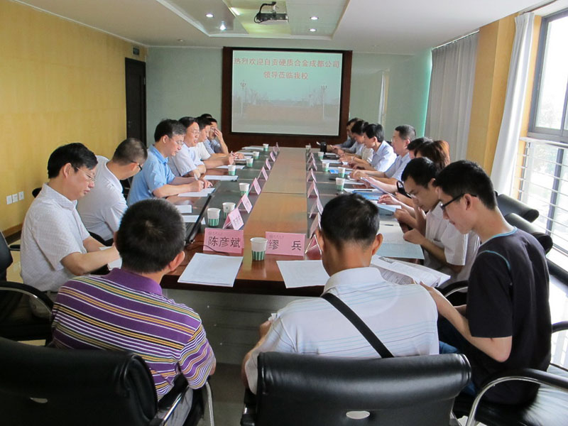 地方合作与服务处处长王志刚详细介绍了我校近年来与地方政府及企事业单位合作交流的情况。科技处处长栾道成就我校近年来科研工作进行了介绍。材料科学与工程学院副院长金应荣介绍了我校在材料科学领域方面的研究成果及学科特色。自贡硬质合金成都公司副总经理贺建忠就公司的简况及发展目标作了介绍。之后,自贡硬质合金成都公司技术负责人与我校材料学科领域的专家进行了深入的技术交流,双方表示,今后将在技术交流、教学实习、人才引进等方面加强合作。