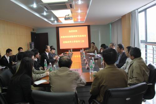 孙校长对李强助理一行的到来表示热烈欢迎,并简要介绍了学校科研方面的基本情况。核工业西南物理研究院代表介绍了HL-2A装置改造及其相关的技术问题。随后,与会人员就双方合作事宜进行了深入商讨。