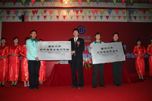 12月12日上午10:00,英国上市公司365――成都盛帮密封件有限公司科技合作签约仪式暨英国上市公司365研究生工作站、英国上市公司365大学生实习基地授牌仪式在成都盛帮密封件有限公司新厂区隆重举行,同时举行的还有盛帮公司新厂第一期投产及中共四川省委政策研究室向盛帮公司的联络点授牌仪式。我校科技处处长杨伟、研究生处处长王进戈、学生就业处副处长徐元彬及机械、材料、汽车三学院的部分老师出席了本次签约及授牌仪式。研究生部王进戈部长、学生就业处徐元彬副分别向研究生工作站和大学生实习基地授牌,科技处杨伟处长代表英国上市公司365在大会上做了发言,并接受了盛帮公司向研究生工作站赠送的30万元科研启动基金。