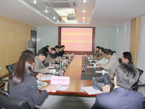 孙校长代表学校对夏义宝董事长一行的到来表示热烈的欢迎,并就我校的基本情况作了介绍。他表示,我校愿意积极打造学科和科研平台,希望与成量公司建立长期的合作关系,通过合作实现双赢,为地方工业科技、地方经济建设和人才培养服务。孙校长还向夏义宝董事长一行介绍了我校50周年校庆筹备情况,并盛情邀请成都成量工具集团有限公司加入我校董事会。