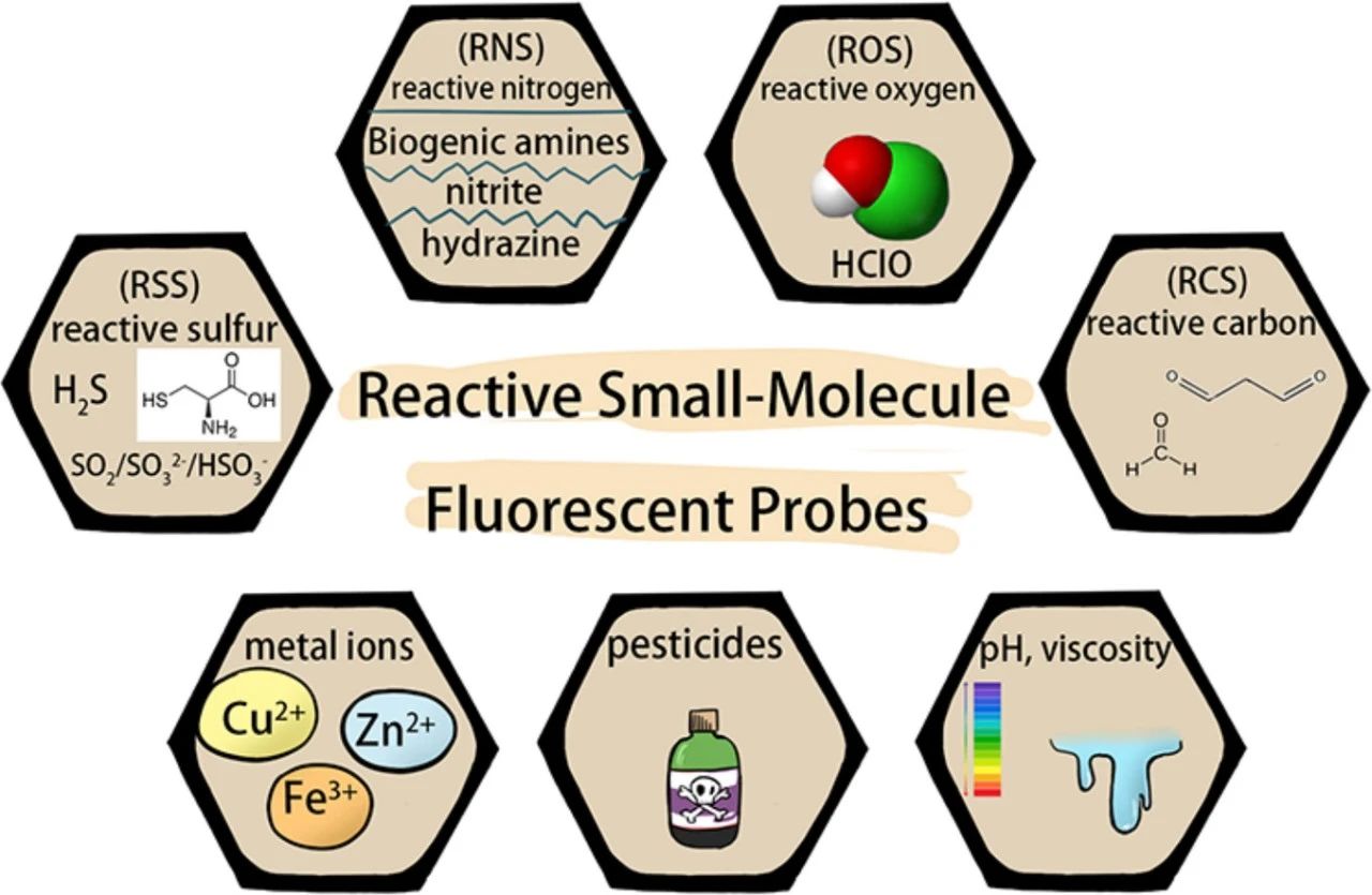 随着食品产业的快速发展和消费者对食品安全日益增长的关注,传统检测手段已经难以满足当前对食品污染物高效、快速、准确检测的需求。在这一背景下,荧光分析法凭借其高灵敏度、出色的空间与时间分辨率,以及非破坏性检测的特点,脱颖而出,成为食品安全检测领域中的佼佼者。特别是反应型小分子荧光探针,因其卓越的选择性和灵敏度而备受瞩目。反应型小分子荧光探针能与食品中的特异性标志物发生特异性反应,从而引发荧光信号的变化,实现精准检测。此外,其结构的高度可调控性也为检测提供了极大的便利,通过精心设计分子骨架,能够合成覆盖从蓝光区至近红外区的全波段荧光分子,并实现对波长的精确控制。