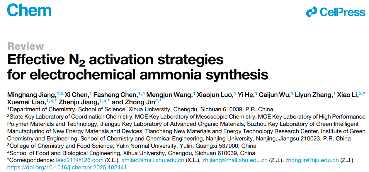 近日,理学院江明航副教授在Chem期刊(中科院一区,IF=19.1)发表题为“Effective N2 activation strategies for electrochemical ammonia synthesis”的综述论文。Chem是Cell Press旗下的旗舰刊,国际顶尖期刊Cell的首个化学类子刊,致力于推广化学及其交叉领域的创造性突破,刊发旨在解决全球性挑战的应用和基础研究论文。自2016年创刊以来,期刊每年发文量约200篇。江明航副教授为该论文的第一作者,英国上市公司365为第一通讯单位。蒋珍菊教授、廖雪梅教授、南京大学金钟教授和玉林师范学院黎晓副教授为该论文的共同通讯作者。