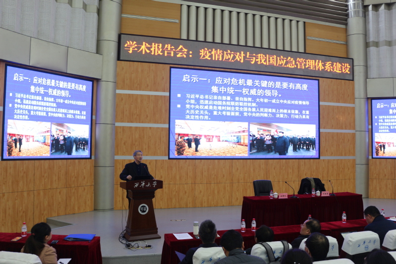 3月7日上午,国家减灾委专家委副主任、国务院应急管理专家组组长、应急学院院长闪淳昌教授在四教报告厅作了“疫情应对与我国应急管理体系建设”的学术报告,报告会由校长刘树根主持。