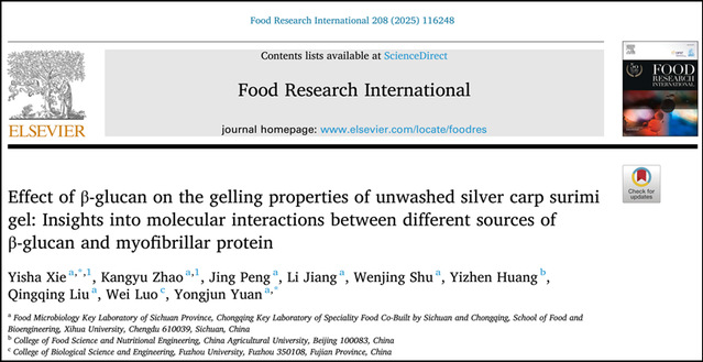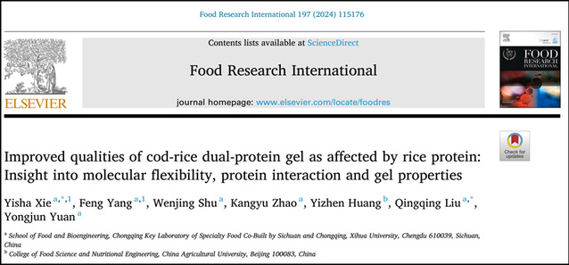 近期,食品与生物工程学院袁永俊教授、刘庆庆副教授、谢伊莎副教授研究团队在Journal of Agricultural and Food Chemistry、Ultrasonics Sonochemistry、Food Research International等国际TOP期刊针对超声调控蛋白凝胶与机制研究等发表多篇高水平研究型论文。
