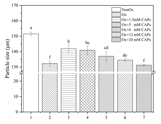 Figure 2.Effect of CAPs addition in AAPH oxidation system on MPs particle size after oxidation.