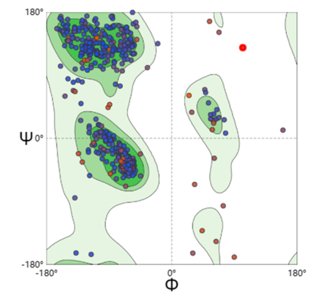 Figure 4.Ramachandran plot of myosin homology modeling.