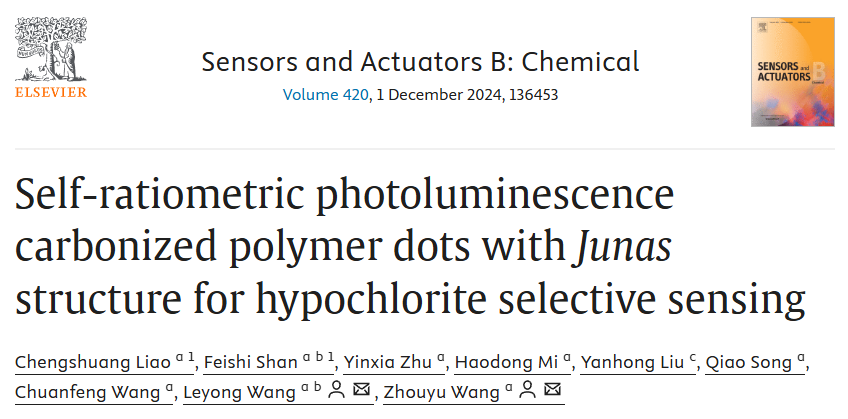近日,理学院王周玉教授联合南京大学王乐勇教授基于柠檬酸衍生碳点及其在分析检测、光-热-电转换及细胞成像领域取得一系列进展,相关研究成果发表在国际学术期刊。