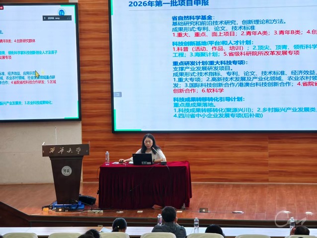 2025年9月29日,学校科技处在图书馆报告一厅组织召开2026年度第一批四川省科技计划项目申报政策宣贯与交流会。各学院科研骨干、拟申报项目负责人及科技处相关工作人员参加会议。