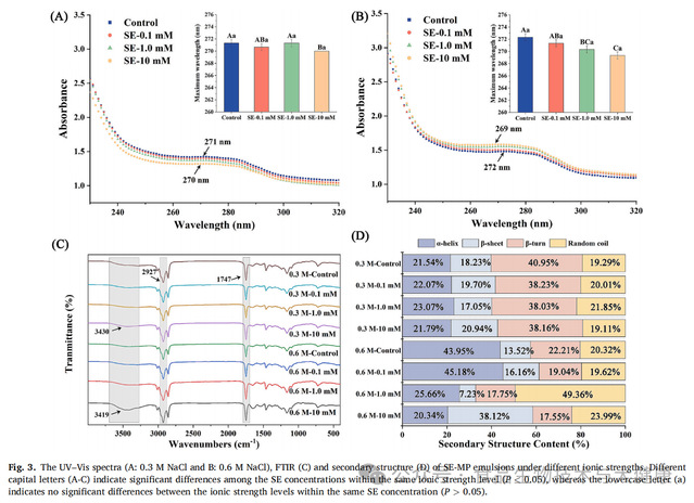 (3)在高离子强度条件下,蔗糖酯会改变肌原纤维蛋白的结构。