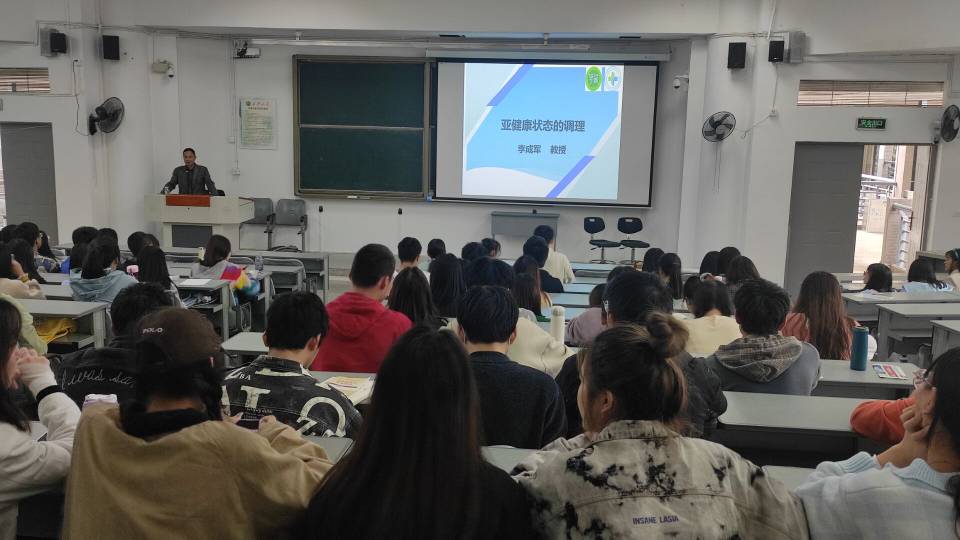 10月14日,为促进健康生活,丰富学生知识面,提升学科认识,大健康管理学院特聘院长李成军教授在5C-204以“亚健康状态的调理”为主题,面向全院学生作了专题讲座。