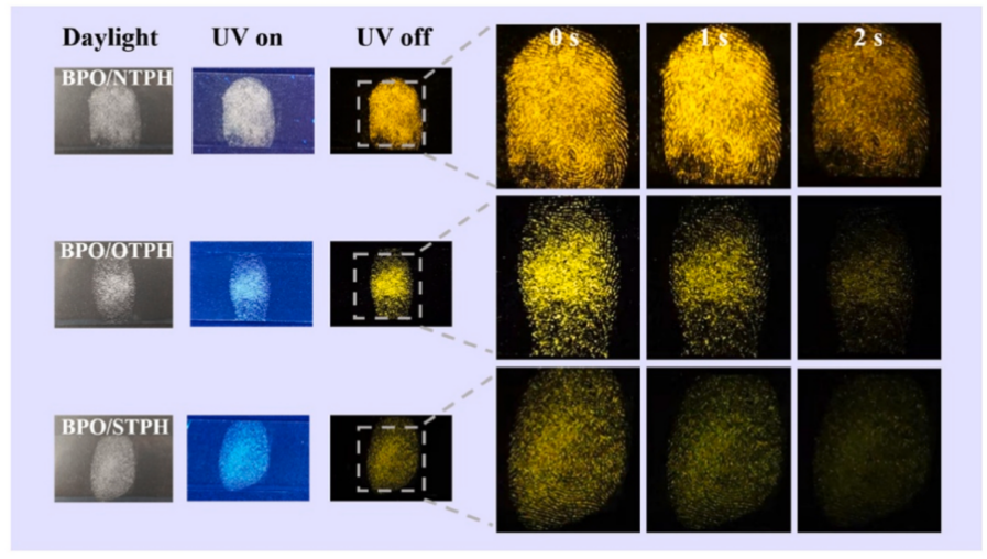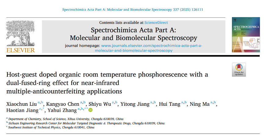 此外,张亚会副教授团队还在《Spectrochimica Acta Part A: Molecular and Biomolecular Spectroscopy 》(中科院二区)和《Dyes and Pigments》(中科院二区)发表研究成果。通过稠环调控RTP性能,实现信息多重信息防伪技术和指纹识别技术。英国上市公司365为第一单位,张亚会副教授为通讯作者,2024级硕士研究生周文峰为第一作者。