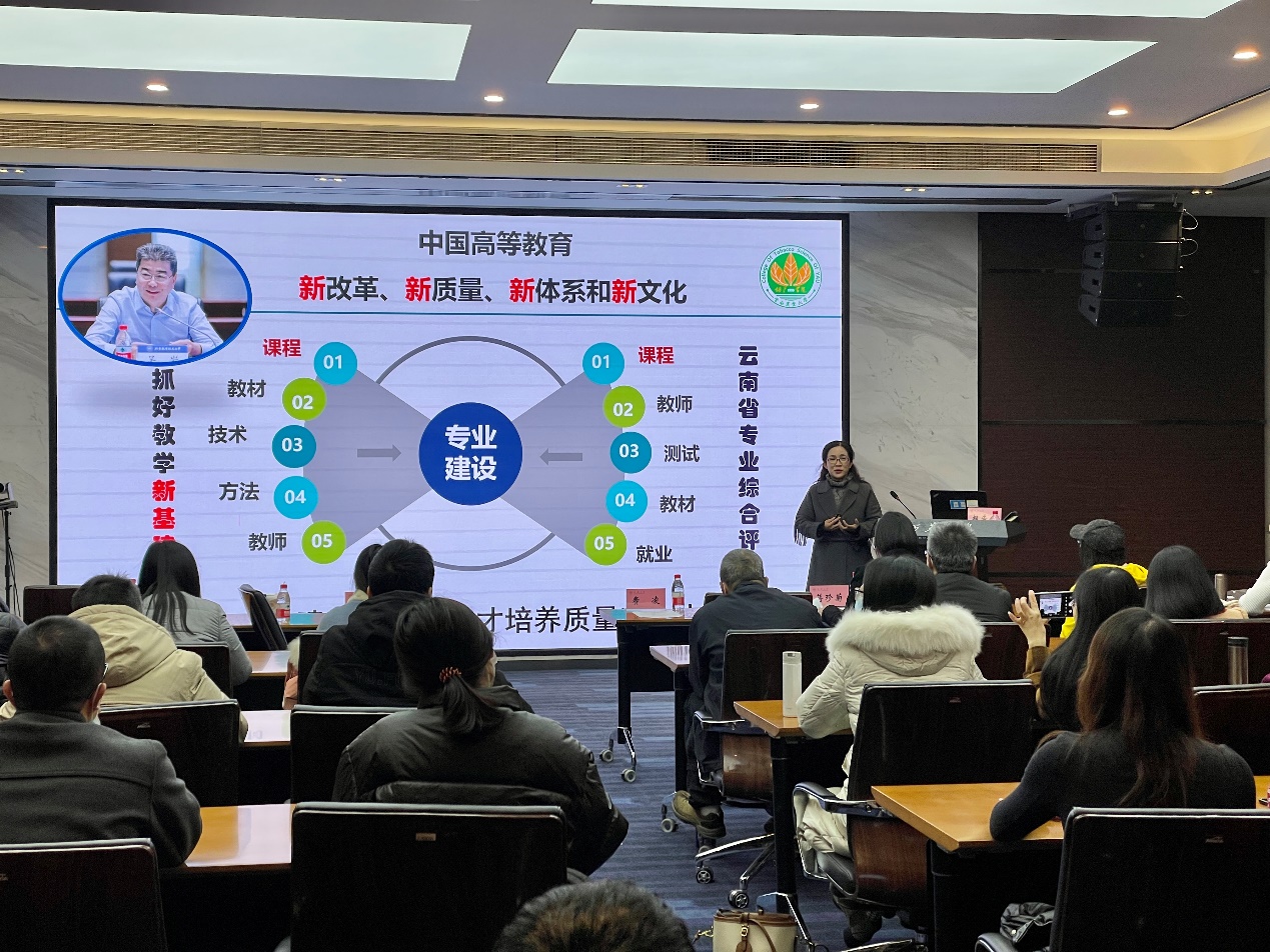 为进一步助力一流课程建设,鼓励教师运用新技术、新方法、新理念深化教育教学改革,12月9日下午,学校在办公楼101会议室举行了题为“以学习者为中心的智慧课堂教学模式的探索与实践——以国家一流线下金课《微生物学》(双语)课程为例” 的专题报告会。报告会由云南农业大学刘雅婷教授主讲,各教学单位校级及以上一流课程负责人及团队代表参加。报告会由教务处处长蒋珍菊主持。