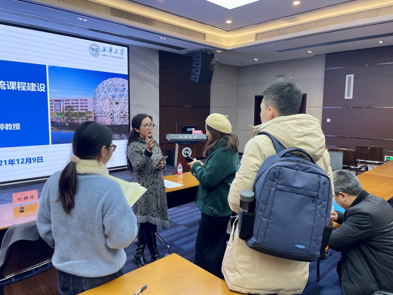 报告结束后,与会老师积极与刘雅婷教授交流。老师们纷纷表示,今天的报告会犹如一场“及时雨”,报告内容具有很强的针对性、指导性和实效性,为老师们提供了更加开阔的课程建设思路和方法。