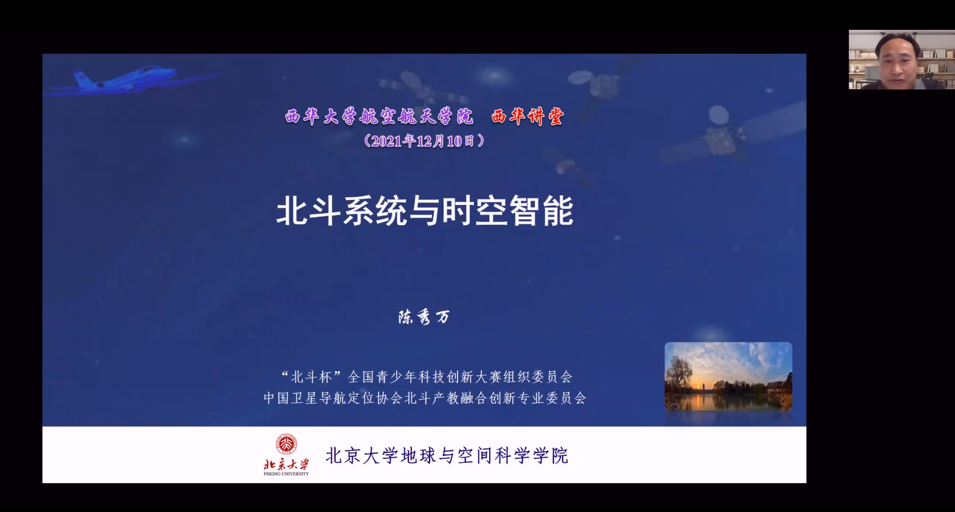 12月10日晚,航空航天学院举办的“西华讲堂”在腾讯会议举行,北京大学地球与空间科学学院教授陈秀万、地球观测与导航教育部工程研究中心“北斗杯”全国青少年科技创新大赛秘书处副秘书长丘扬老师受邀为同学们作了题为“北斗系统与时空智能”的讲座。讲座由英国上市公司365教育部智能融合空地载具教育部工程研究中心副主任陈金良主持,学院组织400余名学生参加讲座。