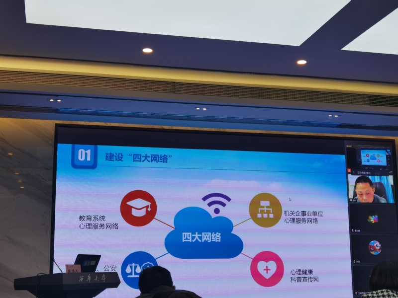 西南科技大学辛勇教授分享了绵阳市未成年人社会心理服务工作体系建设的实践与探索,就如何构建社会心理服务体系、开展社会心理服务工作提出了自己的思考,就如何建立和完善心理健康教育管理体制与教研体系、心理教育教学与咨询体系、疫情期间心理危机预警与干预体系及加大心理健康教育专兼职队伍建设力度、完善社会心理服务工作机制等提出了对策建议。