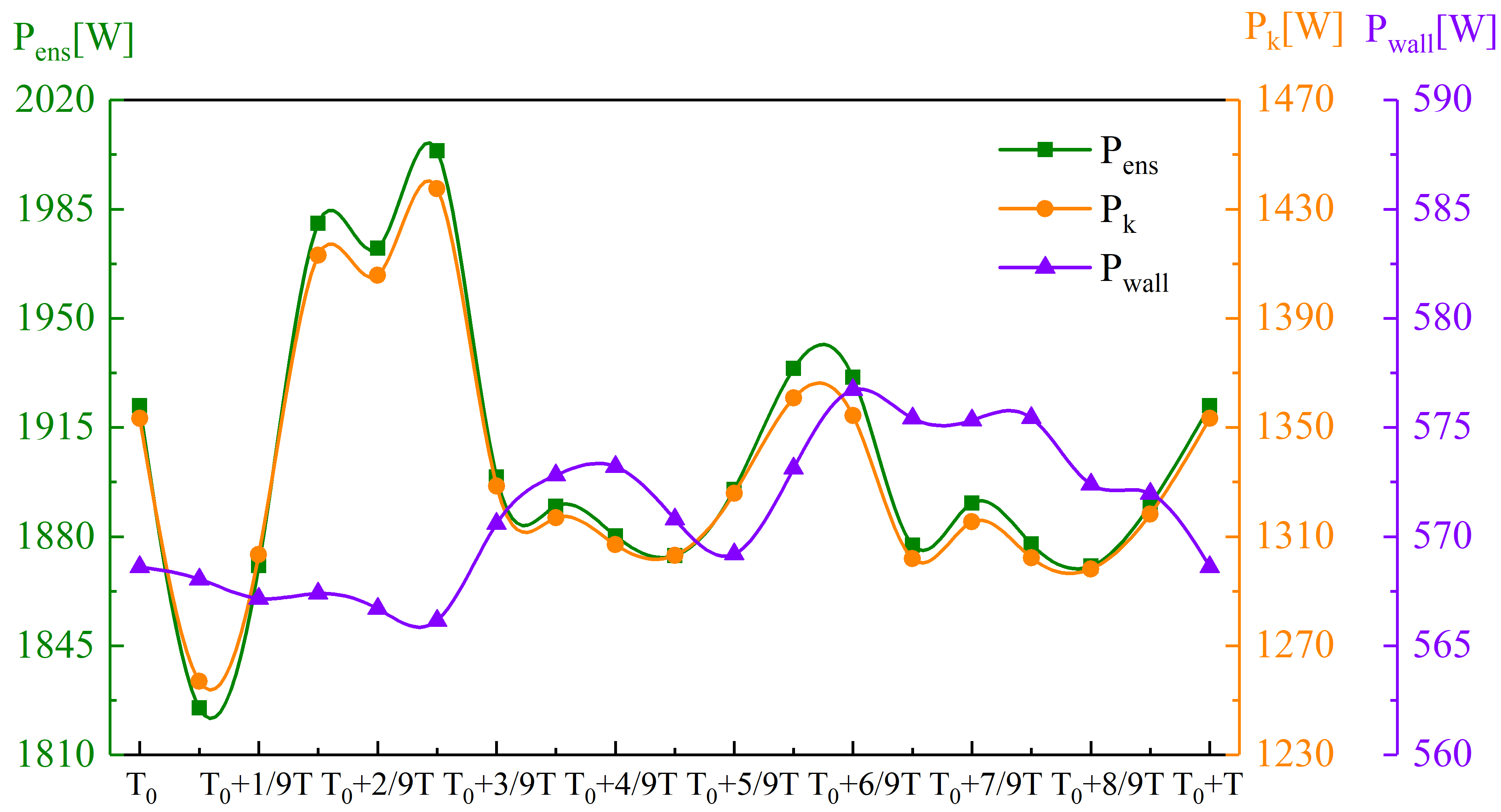 FIG.6. Variation curves for the enstrophy dissipation powers in the water condition.