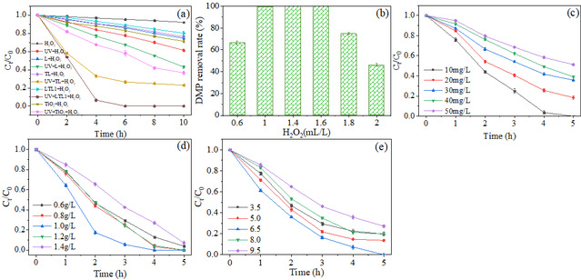 Figure 1. DMP degradation by various H2O2 systems.