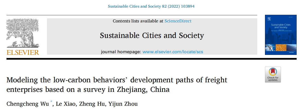 近日,汽车与交通学院的道路交通安全研究团队讲师巫诚诚在国际工程技术顶刊Sustainable Cities and Society(一区,IF=7.587)上发表题为“modeling the low-carbon behaviors’ development paths of freight enterprises based on a survey in Zhejiang, China”的研究性学术论文。