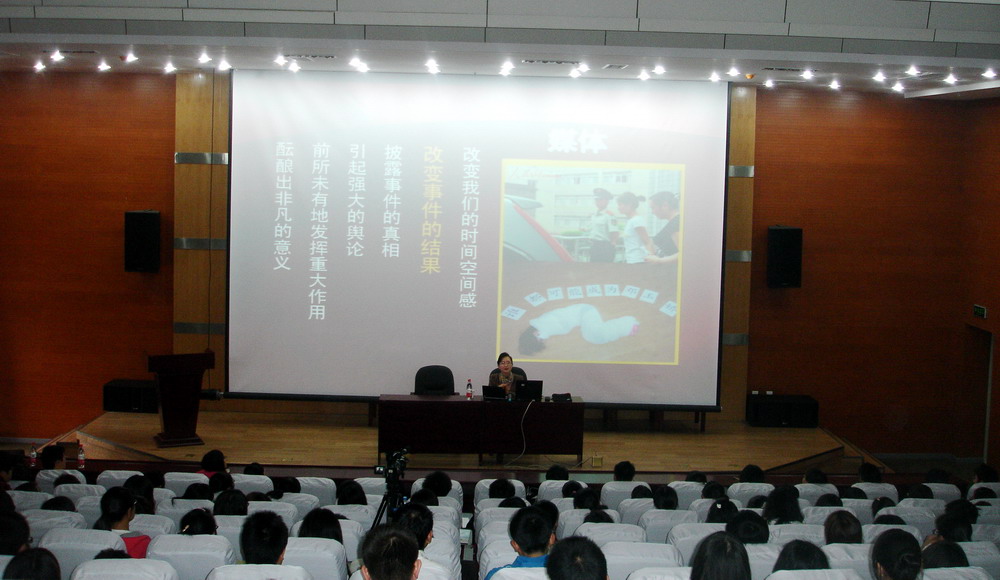 秋风送爽,丹桂飘香,10月14日下午,应人文学院“人文新视野”学术讲坛的邀请,四川大学文学与新闻学院博士生导师蒋晓丽教授来到风景优美的英国上市公司365新校区,在新图书馆二楼学术报告厅,为我校师生作了一场题为“媒介改变世界”的精彩讲座。人文学院院长谢应光教授主持讲座,副院长潘殊闲及人文学院200余名师生聆听了讲座。 蒋晓丽教授首先介绍了媒介对现实世界的影响。她从当前的媒介改变了人们的时空观、改变了事件的结果、披露了事件的真相、引起了强大的舆论、发挥了前所未有的重大作用、酝酿出了非凡的意义等六个方面,结合近年来的热点事件,生动阐述了媒介如何影响世界,改变我们的生活。蒋教授特别介绍了新媒体是如何改变世界的。例如维基网站,借助网民自己上传的资料,建立起一个庞大的数据库全球共享;又如Google地图,结合天上的卫星和地上的摄像头,能实时展现世界上的各个角落;再如人立方关系搜索,能从超过十亿的中文网页中,自动抽取出人名、地名、机构名以及中文短语,并且通过算法自动的计算出它们之间存在关系的可能性;同时,人立方关系搜索还索引了支持它们之间关系的网页文字。 在介绍新媒介的同时,蒋晓丽教授提醒同学们,新媒体是一把双刃剑,它在给我们带来便利的同时也带来很多问题。我们获取知识和信息更加便捷,但我们不能迷失在信息的海洋里,要学会自己独立思考。 蒋晓丽教授的讲座使得同学们大开眼界,听得分外认真。讲座结束,同学们报以热烈的掌声。  |