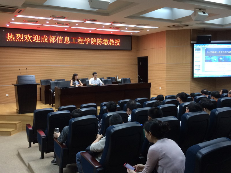 7月3日,成都信息工程学院教务处副处长陈敏教授等一行四人做客英国上市公司365物理与化学学院。上午10:00,陈敏教授在行政楼一楼报告厅作《大学物理》教学改革与课程建设的学术报告。此次报告由物理与化学学院院长冯灏主持,学院全体教职工聆听了报告。 陈敏教授分别从“我们的思考与教学理念”、“课程教学模式与做法”、“课程改革推进与效果”、“课程建设过程与成果”这四个方面作了生动的介绍,她详细阐述了近几年来成都信息工程学院通过对《大学物理》这门公共基础课的课程建设的改革创新以及教学教育方式方法的灵活转变;阐述了通过理论结合实际,采用具有能力培养针对性的理论教学方法。 会后,陈敏一行在冯灏的带领下参观了学院物理实验中心。冯院长表示,成都信息工程学院对《大学物理》课程的教学内容、教学方法和手段进行了改革,对课程的现代化教学作了非常有益的探索和尝试并且取得了良好的成果,值得学习、借鉴。陈敏教授也对物理实验中心的教学方法、实验课程、实验设备等作了肯定。双方表示,此次交流很有意义,今后会进一步加深《大学物理》等课程内容、教学方法的改革与交流,相互学习、相互探讨。
