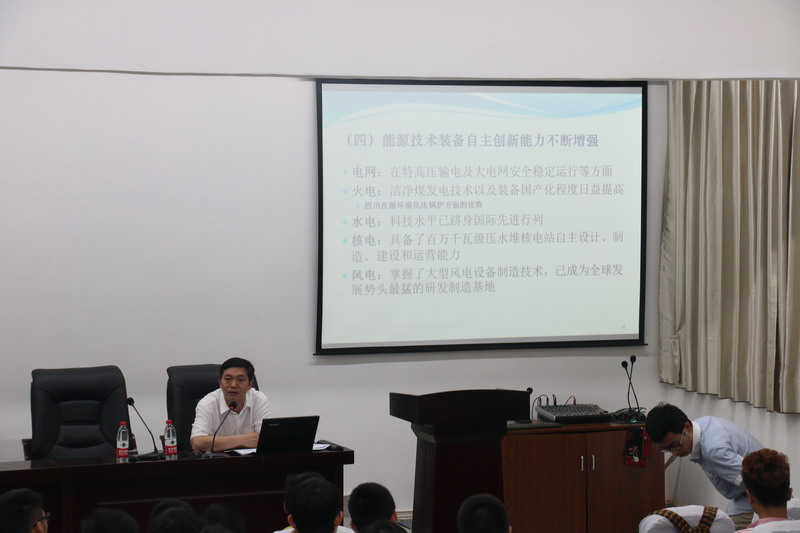 5月21日16:00,能源与动力工程学院所举办的“能源开拓”讲座在1B-201教室举行。四川省经济和信息化委员会环境和资源综合利用处处长、重庆大学硕士生导师管永林担任此次讲座的主讲嘉宾。结合学院特色,管永林教授为2014级能源与动力学院学子分析了当代能源的现状,并重点讲解了能源开拓方面的相关知识。 管永林教授以PPT的形式向在座师生介绍了此次讲座的主体内容,包括能源利用的历史和现状、能源环境发展的规律和趋势、我国面临的能源问题和挑战以及新常态下能源环境可持续发展对策等四个方面。管教授谈到,我国电力飞速发展,发电量已远超美国。尽管发电总量遥遥领先,但是我国人口增长数量大,因而人均消费量大大减少。同时,煤、石油等化石能源的大量消耗导致人类面临严峻的环境污染及能源枯竭等问题,新能源的开拓迫在眉睫。 管永林教授将全球的水力和风力发电量进行比较。他说:“能源的勘测与利用是这个大格局下不朽的话题,不论是时代的变迁还是人员的更替,这个话题将在不同的时间诠释相同的意义,不管是经济的发展还是科技的腾飞,能源都扮演着必不可缺的角色。”他希望当代大学生具备大局观念,明白自身专业的发展方向。最后,管教授为在座学子推荐了一系列与专业知识相关的书籍,并且留下了自己的电话号码,希望能够与在座学子多加交流,解答学子们的疑惑。 本期能源与动力工程学院的讲座充分结合学院的专业性质,以引领学院学子将专业发展和个人规划相结合,学生们参与热情极高,收获颇丰。