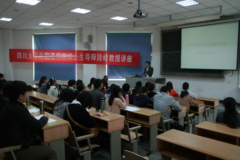 3月21日下午,外语界知名学者、四川大学段峰教授应外国语学院邀请在4A-305教室为全院师生带来了一场以“跨学科视野下‘文化翻译’辨析”为主题的学术报告。报告由学院党委书记陈达主持。 段教授以翻译研究的文化转向为切入点,将“文化翻译”置于跨学科的视野之下,分析了“文化翻译”学术语在翻译研究、民族志研究以及后殖民研究中内涵、外延的异同。翻译研究的文化转向意味着翻译作为文本向翻译作为文化、作为政治的转向,它关注的重点从原文与译文之间的等值、对等关系转向原语文化与译语文化之间的不平衡权力、话语关系,它主流的研究方法从规定转向了描写。在翻译的跨学科语境之下,民族志学和后殖民研究进入翻译研究,重新诠释了翻译概念,也使译学研究面临本体与外围研究的困境,使翻译中的话语霸权等问题得到凸显。段教授认为,“文化翻译”在各学科领域的含义有关联、交叉的一面,同时由于关注的翻译对象不同又有彼此相异的一面。 报告打破了学界对“文化翻译”的笼统认识,彰显了其在不同学科领域的差异。学院师生反响强烈、踊跃提问,学术讨论在意犹未尽中结束。 此次学术报告将有助于热爱翻译和翻译研究的西华学子对“文化翻译”这一学科前沿问题做更深入的思考,为全球化视野下“中国文化走出去”这一当代中国人最自豪的事业贡献力量。 段峰简介: 四川大学外国语学院院长、教授、博导,长期从事翻译、人类语言学研究。主持一项国家社科基金项目:“‘文化翻译’与少数民族文学英译研究:基于民族志和翻译学的视角”;两项省部级社科项目:四川省哲学社会科学“十一五”规划课题“语言学翻译理论研究”;教育部 “十五”规划专题项目“美国交际民族志学的发展及对我国少数民族文化研究的启示”。出版专著《文化视野下文学翻译主体性研究》一部、译著六部,参编教材一部,发表论文二十余篇。
