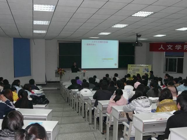 12月9日晚7点,应人文学院邀请,四川师范大学游永恒教授莅临我校,在4A-104教室作了一场题为“大学生靠什么资源应对未来”的专题讲座。本场讲座由人文学院副院长潘殊闲主持,300余名同学到场聆听了讲座。 游永恒教授以自己创作的中国十五年文化变迁的故事入题,从社会现实出发,对当代大学生所掌握的资源、如何提升自己的道德修养以及如何发展和谐的人际关系等问题进行了系统而详实的论述。他认为,作为当代大学生,拥有健康的身心、端庄的道德、专业的知识与技能以及良好的创造性等资源,只有不断追求综合素质与专业素质的共同发展,才能使当代大学生真正具备应对未来社会要求的素质与能力。同时,游永恒教授还通过国内外大量有代表性的案例对比分析了我国当代大学生所存在的对职业道德意识淡漠、缺乏对陌生人的礼貌与尊重以及自我中心等问题,并为大学生如何提升自己的修养提出了诸多有益的建议。 游永恒教授以他丰富的人生阅历、幽默的语言不仅为我校学生展示了一段成功的人生典范,也为同学们构筑了一幅人生发展的蓝图,博得了到场同学热烈的掌声。