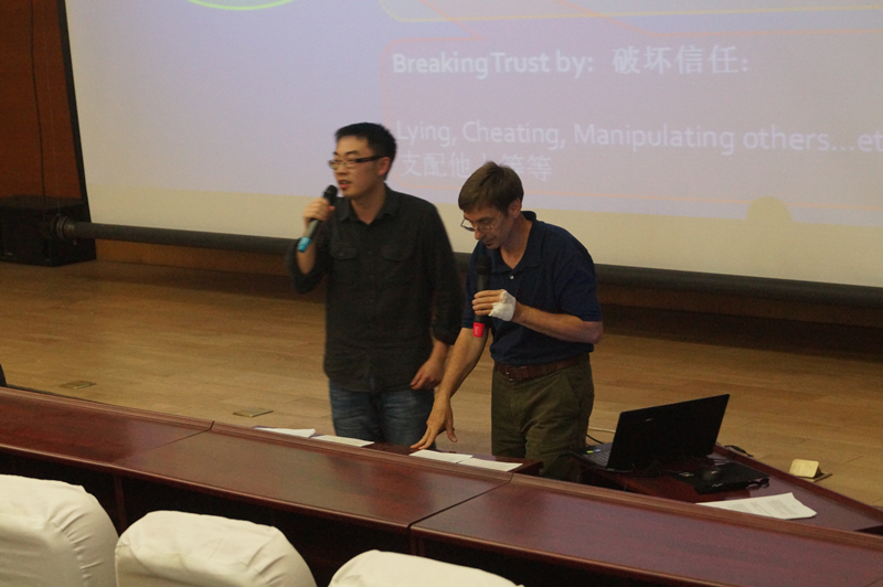 4月22日晚7:00,由中国红十字会与各大高校合作的旨在关爱大学生心理健康的“心理阳光工程校园系列讲座”第二场——“如何应对冲突”在图书馆报告厅举行。本次讲座由英国上市公司365心理健康与研究服务中心主办,英国上市公司365大学生心理健康协会承办。 此次讲座的主讲人为Daniel Sims,即来自美国,西肯塔基大学硕士,在美国一直从事中学和大学的教育工作。1999年来到中国,先后在四川大学、西南财经大学、成都体育学院任教,中国红十字会心灵阳光工程青少年生活教育项目特邀讲师。 经过上一次的讲座,Daniel Sims在西华已经具有了一定的人气,在热情地向大家介绍其家庭后,Daniel Sims向大家提问:为什么我们会产生冲突?随后便从道德良心、人性的缺点、独特性三方面为大家作了详细的分析。让大家了解了冲突产生的根源。紧接着是“糖果游戏”——四位同学上台表演了一个小短剧,形象生动地展现了一个小冲突中的四种不同人物形象,引出了今天讲座的主要问题——如何应对冲突。针对这个问题,Daniel Sims给大家介绍了托马斯-克尔曼冲突模式,并运用该模式详细分析了小短剧中所表现的在冲突中的四种不同人物形象,从而得出应对冲突最好的方法即达成共识。然后他又具体的跟大家解析了解决冲突的准备和冲突解决两个阶段的过程。在大家知道如何应对冲突后,他又让大家做了一个评判式思维练习,即运用大家刚学到的知识分析解决自己近期的一个小冲突,让大家做到了真正的学以致用。 最后是学生们的自由问答时间,众多同学积极提问。Daniel Sims结合其自身的丰富经历,用一个个生活小案例解答了大家的疑问,同学们对Daniel Sims的讲解都很满意。在同学们和Daniel Sims的分享交流中本次讲座完美谢幕。紧接着还会有两场心理阳光工程校园系列讲座,敬请期待。 |