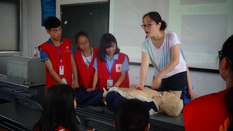 为了提高同学们在危机灾难中的急救、自救、互救的能力,6月12日,应用技术学院在7教503进行了急救专题讲座。特邀彭州市红十字会弓皘外科医生担任主讲人,来自于各个专业的同学们聆听了本次讲座。 弓皘医生就生活中的突发情况、急救的方法、原则等作了讲解,着重向同学们讲解了急救方法中的心肺复苏、人工呼吸和创伤急救。随后,弓老师展示了心肺复苏的现场操作,第一步先叫病人,并拍打其肩膀看其是否清醒;第二步清理病人呼吸道,检查病人有无呼吸;第三步进行按压救助,把手放在其胸部正确位置用自身上体重力进行按压,每按压30次对其口吹气两次 ,每次按压深度至少5厘米,至少坚持30分钟才能结束此操作。通过实际的操作,同学们更清楚地了解到了正确的急救方法,为同学们的安全提供了更多的保障。最后弓皘医生强调:“急救的常识让我们的生活多了一重保障。” 此次讲座的成功举办,让同学们更清楚地了解急救的重要性,掌握了更多正确的急救方法,也让大家更加关注自身的安全。
