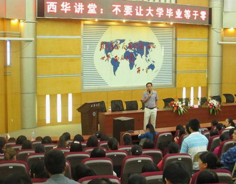 9月24日10:00,应人文学院邀请,中公教育集团助理总裁李国斌在四教报告厅举行了主题为“不要让大学毕业等于零”的励志专题讲座,人文学院2012级新生聆听了本次讲座。 在讲座中,李国斌老师结合大学生在校期间的学习和心理状态,具体讲述了同学们在大学不同阶段的实际情况。他告诫同学们作为大学生要时时更新观念,学习技能,踏实做事,不断提高自己,并且要给自己树立明确的目标,在学好文化课的同时还要锻炼其他方面的能力。他还以鲁迅的四部著作打趣说:咱们的大学四年大致是《呐喊》—《彷徨》—《伤逝》—《朝花夕拾》几个步骤,李老师幽默生动的话语赢得同学们阵阵掌声。 这次励志教育讲座对正处于入学教育阶段的大一新生来说,无疑给了他们前进的方向与动力。