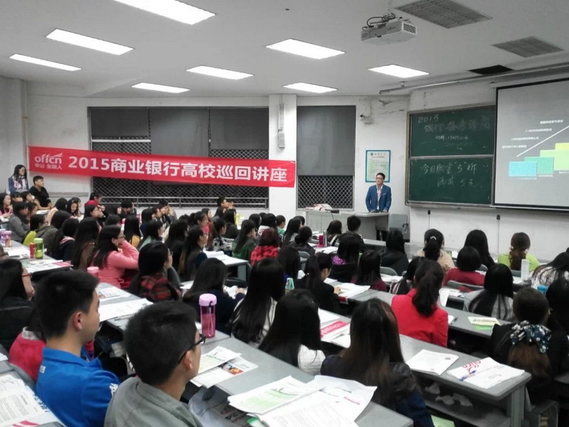 10月21日晚7:00,人文学院邀请中公教育在五教举办银行校园招聘公益备考讲座。主讲人为中公教育陈思聪老师。 首先,陈老师讲解了我国银行体系,指明了中国银行体系由中央银行、监管机构、自律组织和银行业金融机构组成,让同学们对银行机构有了初步了解。随后,他对银行招聘新大纲及政策进行解读和分析,将2015年考试规则及注意事项告诉了同学们,使他们对银行招聘考试的变革有了更深层次的认知。陈老师还将银行招聘学历、专业、外语要求一一为同学们讲解,并进行了备考、网申、笔试、面试技巧的指导。此外,陈老师还向在场同学推荐了银行招聘考试教材,这不仅解决了备考考生对银行招聘存在的疑问,还让考生更加明确备考方向性、针对性。最后,陈老师还用幽默易懂的话语对备考生就银行笔试重要考点及面试考前技巧提出的疑问进行了现场解答,让同学们备考更具专业性、针对性、全面性、方向性。 讲座在同学们的掌声中圆满结束。
