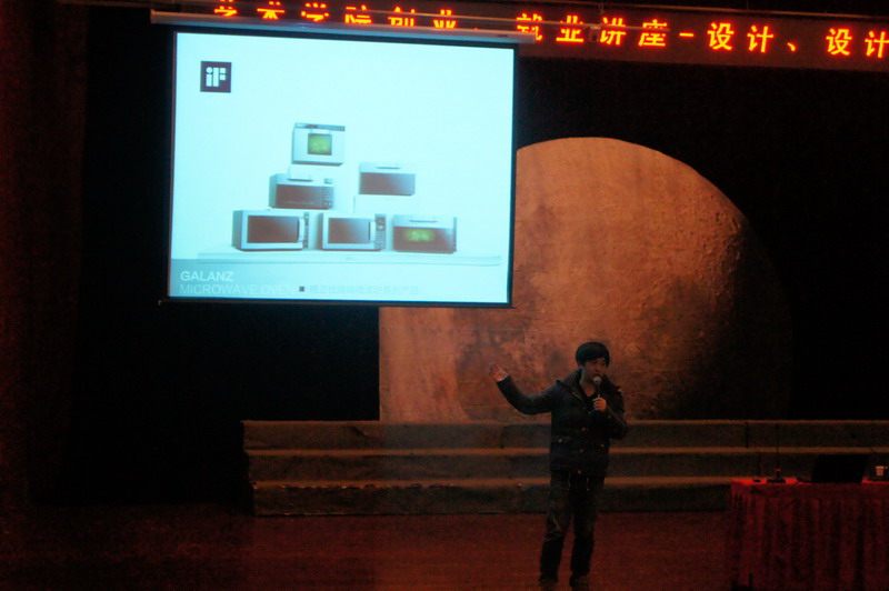 12月30日下午2点30分,由艺术学院校友魏长文主讲的“设计,设计师”创业就业主题讲座在艺术大楼C区音乐厅举行。学院党委副书记、副院长曾贤,学工办主任裴西宏出席了此次讲座,2011级设计专业学生聆听了讲座。 校友魏长文是艺术学院2002级工业设计专业学生,现任深圳浪尖设计集团设计副总经理兼创意总监。讲座中,魏长文向在场的同学们述说他的“设计”之路,他结合自身的经历,根据自己进入职场后所接触过的设计工作,以及自己心理的变化与大家共同分享了他的经历,同学们被他的讲述深深吸引。 通过参加此次讲座,同学们明确了在专业学习中的方向,有利于同学们树立创业的自信心。