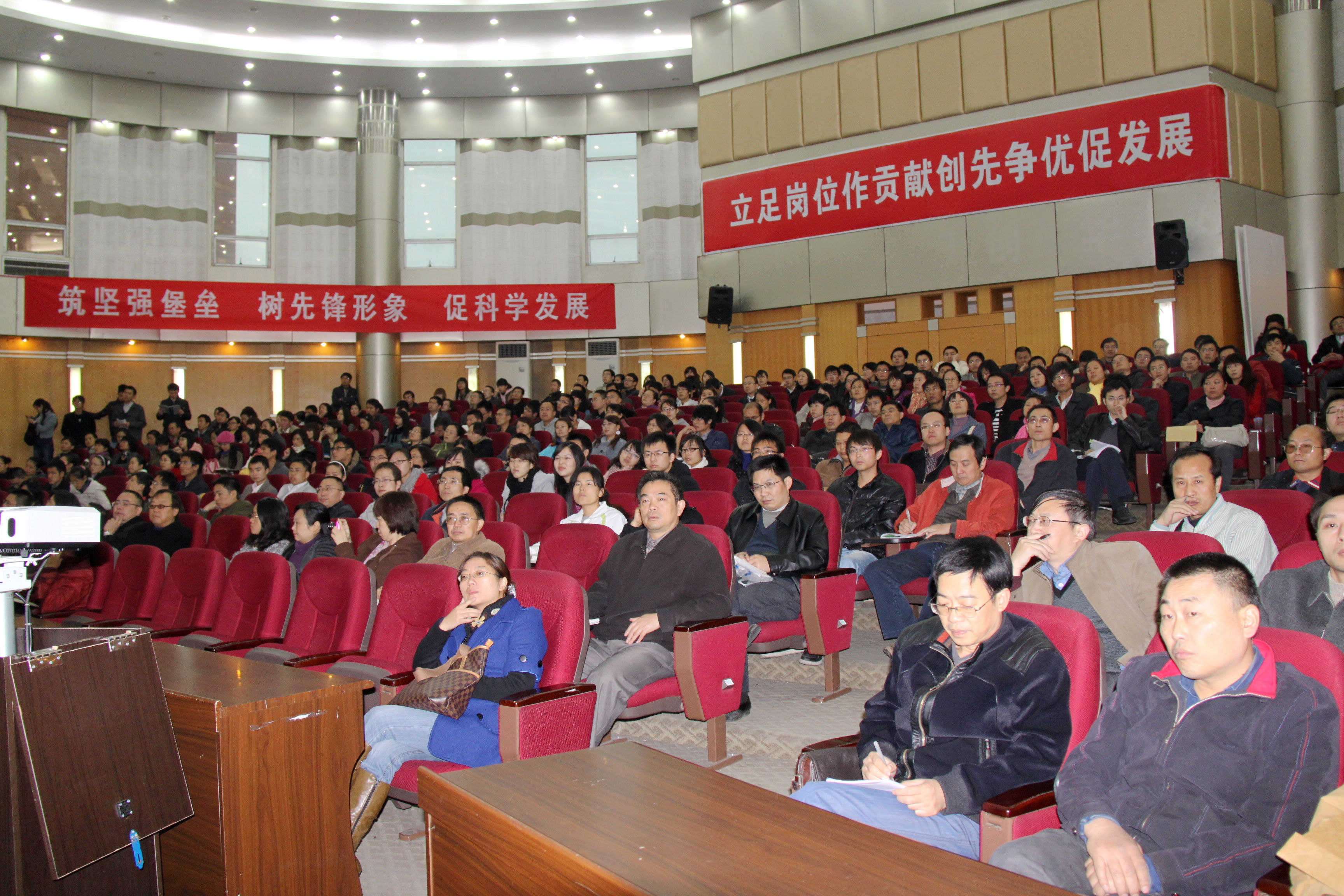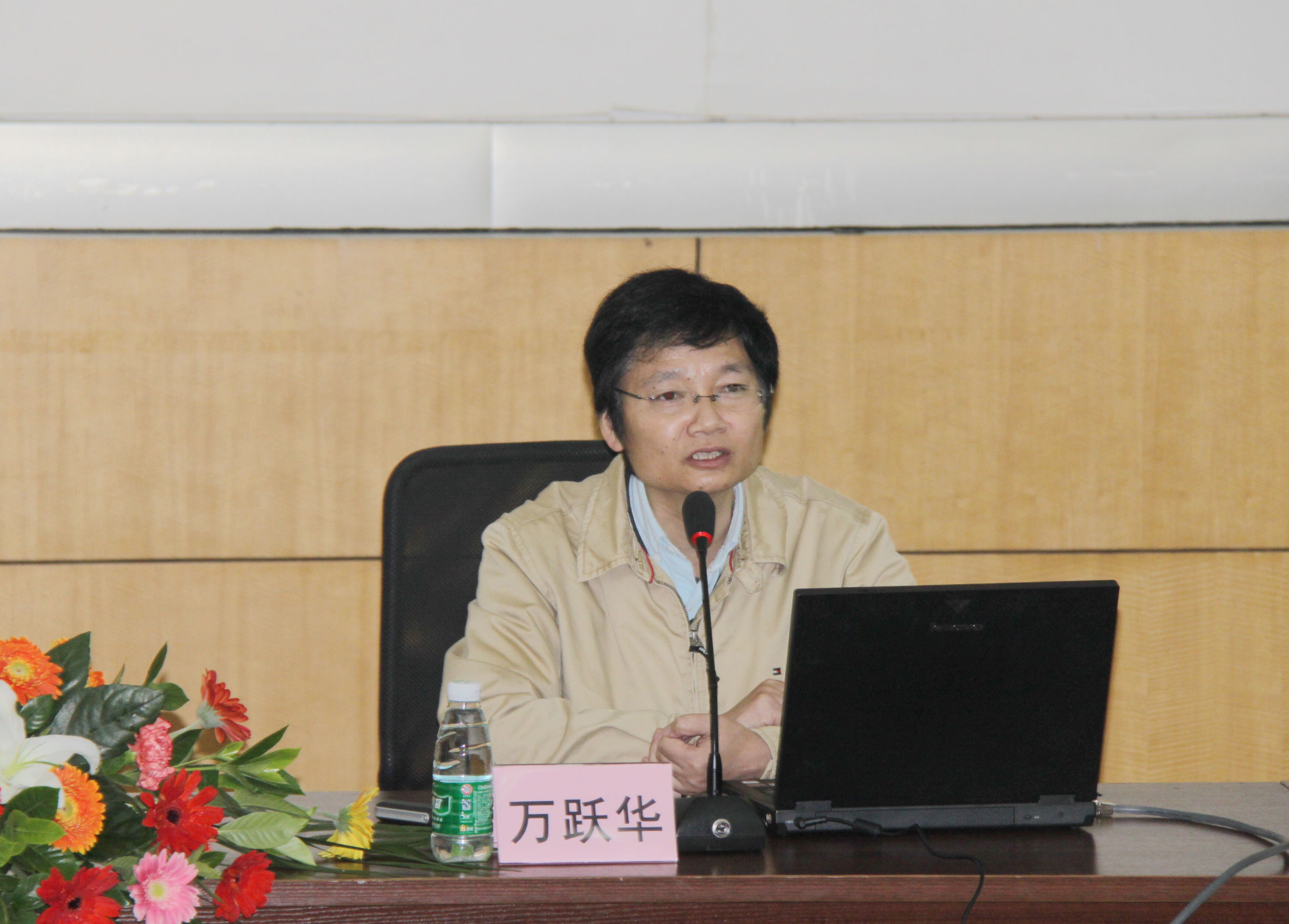 会场 万跃华教授正在讲授 300多名师生到场聆听 |
