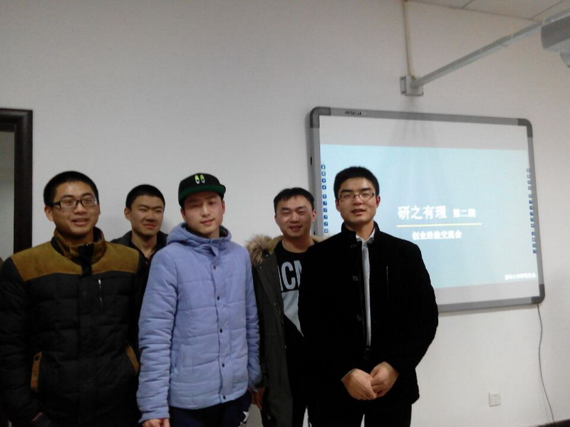 12月17日,由校团委主办、研究生会承办的“研之有理”第二期在我校图书馆交流室3-6举行。在本次交流会中,能源与环境学院2012级流体机械及工程专业硕士研究生杨亚斌应邀作了以“放飞梦想,起航创业路”为主题的讲座。 讲座中,杨亚斌结合自身创业经历,为在座人员讲解了“何为创业”、“创业能带给我们什么”、“创业团队容易出现的状况”等问题,他分享到,有问题的地方就有事业,有问题的地方就有价值,作为创业者要有梦想,不怕失败,勇敢迈出创业第一步,不断铸造自己的信念。最后,杨亚斌不仅为大家进行详细的回答,还与大家分享《布洛克与教练的故事》,以及为大家做了太极表演。