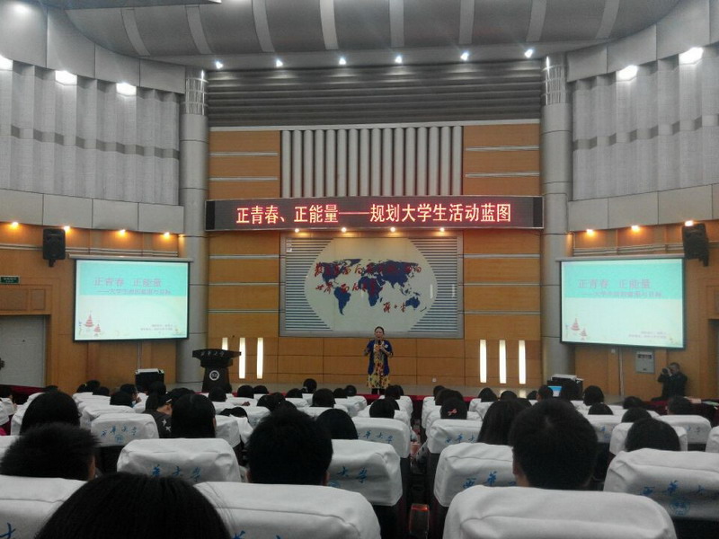 10月16日下午4:00,人文学院于四教报告厅举行了以“正能量,正青春,规划大学生活动蓝图”为主题的讲座。学院党委副书记兼副院长张雪征,学生党总支书记兼学工办主任徐攀,团委书记王燕晶及14级全体新生参与了此次讲座。主讲人为幸福教练联盟创始人、身心美学作家鹿雯立。