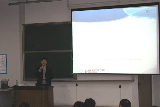 11月4日晚上 7:30, 同济大学机械学院副院长、中国大学生方程式汽车大赛规则委员会主任委员李理光教授来校作了题为“大学方程式汽车大赛的介绍与交流”的学术报告。交通与汽车工程学院相关领导及各年级学生200多人聆听了报告。
