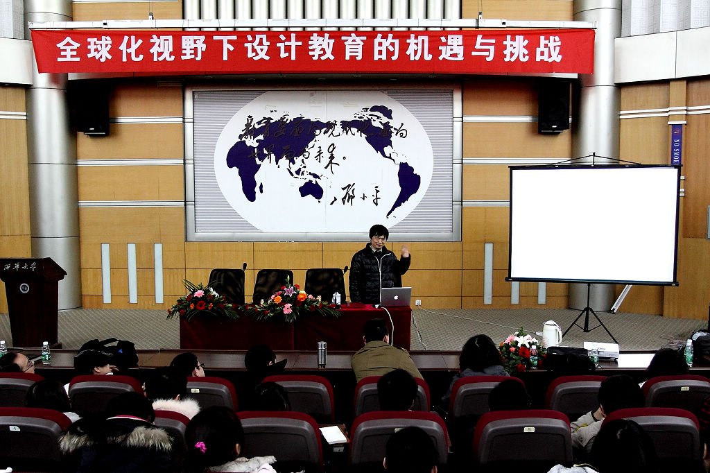 12月27日,湖南大学设计艺术学院院长何人可教授应邀莅临我校,为艺术学院工业设计系和艺术设计系的师生献上了一场以“全球化视野下设计教育的机遇与挑战”为主题的讲座,并受聘为艺术学院客座教授。 何人可教授是教育部高等学校工业设计专业教学指导分委员会主任委员、中国工业设计协会副理事长、中国机械工业教育协会工业设计学科教学委员会主任委员、湖南省设计艺术家协会主席,在中国工业设计界具有非常高的声誉和影响力,他的来访为艺术学院同学们提高设计专业素养起到了积极的促进作用。 讲座中,何教授分析了基于全球背景的工业设计发展及其教育趋势,提出了服务模式、商业模式、交互界面、产品平台和一体化设计的设计体系,向师生们展示了湖南文化创意产品开发工作坊等湖南大学设计艺术学院最新的设计、研究和教学成果。何教授还与艺术学院工业设计系的教师们进行了交流,传达最前沿的教学理念和宝贵的教学经验。 12月28日,设计系教师陪同何教授前往四川长虹,参观了四川长虹的创新设计中心,与长虹创新设计中心工业设计部部长蔡年贵、创新设计中心主任叶根军就设计趋势、设计教育等话题进行了交流。