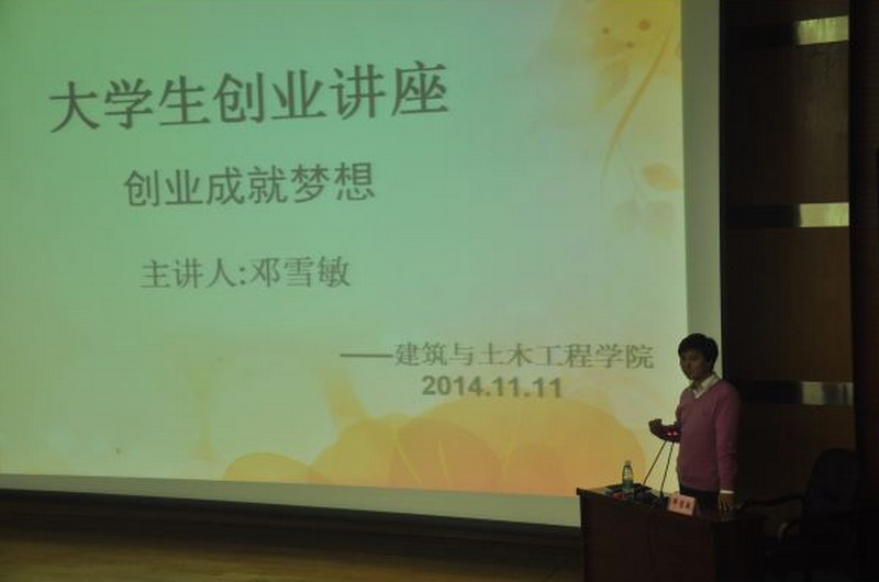 11月11日下午2点,建筑与土木工程学院99级校友邓雪敏,现任四川世传置业有限公司董事长,为西华学子带来大学生创业讲座——“创业成就梦想”,讲座在图书馆报告厅顺利举行。学院党委书记向勇、副书记熊华参加了此次讲座。 邓雪敏从正确选择就业方向、勤奋做事、学会坚持、拥有一个梦、脚踏实地做好每一步等几个方面讲解了他对于创业与梦想的观点和看法。 在讲座中,邓雪敏首先以自己当年创业的经历给同学们作了分享。邓雪敏坦言,当初走过弯路,遇到过困难,但最终促使他成功的关键在于个人的坚持、队伍的团结和个人的诚信。说到诚信,邓雪敏说道:“那时,为了做一个项目,缺乏资金,没有任何抵押就从朋友那儿借到1千万,靠的就是诚信!” 随后,邓雪敏建议同学们的创业团队要学会坚持,要把坚持作为一种习惯,要德才兼备,要丰富自己的知识。他又以自己的公司为例,举了作为一个房地产开发者,应该具备的建筑设计、工程造价、法律等相关知识。同学们对邓雪敏随即讲出的相关知识赞叹不已。“没有想到一个公司老总除了管理能力强还这么懂专业、这么懂法律!”在随后采访中,房地产专业的李春羽同学如是说道。 他精彩的演讲博得了在场师生的阵阵掌声。在精彩的演讲之后,邓雪敏又耐心地回答了现场同学们的提问,解决了同学们心中关于创业的种种疑问。 “大学毕业生自主创业不仅解决了自己的就业问题,而且还给别人提供就业机会和岗位。对当代大学生来说,在国家政府大力的支持下,自主创业是一条光明之路,希望之路,可以让我们为自己的未来奋力一搏。”讲座在向勇对当代大学生勉励的话语中,落下帷幕。