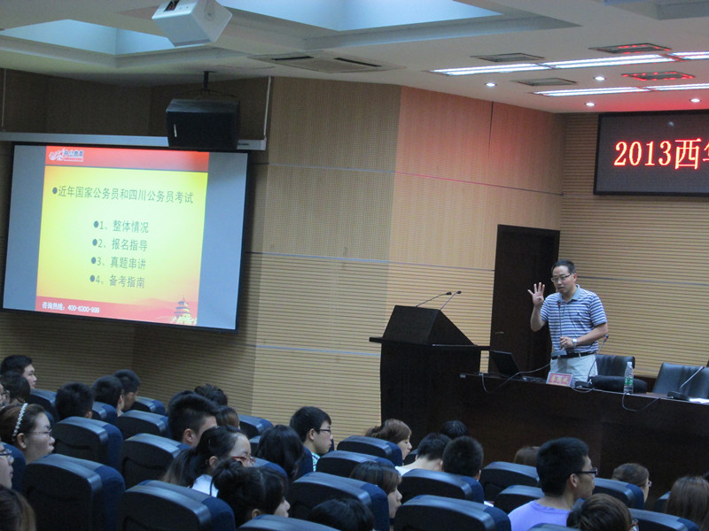 6月4日,2013年英国上市公司365“中公教育”助学金颁发仪式在行政楼一楼报告厅举行。仪式结束后,李国斌先生作了公务员考试解析讲座,分别从整体情况、报名指导、真题讲解、题型串讲四个方面给同学们做了分析。 除了给有意向参与公务员考试的同学传授了经验,李老师也为选择就业的同学给出了建议。他指出,大学的学习,最重要的是能力的培养。他说道:“文凭改变不了命运,能力可以。我们需要做的是,先修德再干活然后再学习。”他建议同学们在择业观上做到学会“审形”、不轻易做决定、选择了就坚持下去。 最后,李国斌先生用几个“不要拍”作为结束语:“不要怕学校不理想、不要怕短暂的停留、不要怕起点低、不要怕条件苦、不要怕地方偏、不要怕提拔慢……”每一句都醍醐灌顶般让在场大学生心有感触。 这场别开生面、让人印象深刻的讲座,很多同学获益匪浅。走出会场,很多同学都对这一个多小时的讲座意犹未尽。李国斌先生代表中公教育向青年学生传递的“改变未来,回馈社会”的信念引起了学生们的共鸣,激励着不少学生为之奋斗。