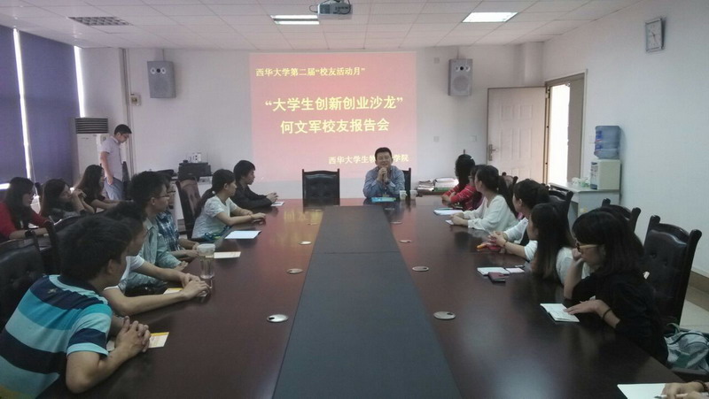 9月10日上午10点,生物工程学院的大学生创业沙龙在五教四楼会议室顺利举行。本次创业沙龙的主讲是生物工程学院91级知名校友何文军。院党委副书记兼副院长刘浏出席并主持本次座谈会。学院2010级、2011级、2012级的部分学生参加了会议。 座谈会上,何文军从法制、信心、理想、坚持四个方面,结合自己的亲身经历,向在场的同学们传达了创业必备的几大心理素质。其间,他还提出:“大学毕业生就像是一粒种子,要在土壤中经历过黑暗,最后才能长成参天大树。”以此鼓励同学们积极创业,不惧创业途中的困难。接着,在场的生物工程学院2010级、2011级、2012级不同年级的学生们结合自身情况,踊跃提问。何文军知无不言,言无不尽。不仅解决了同学们的问题,还在回答中提出了很多好的建议,使学生们受益匪浅。 最后,何文军还留下了自己联系方式,鼓励在场的学生们努力学习,勇敢奋斗。此次座谈会在同学们的掌声中完美落幕。