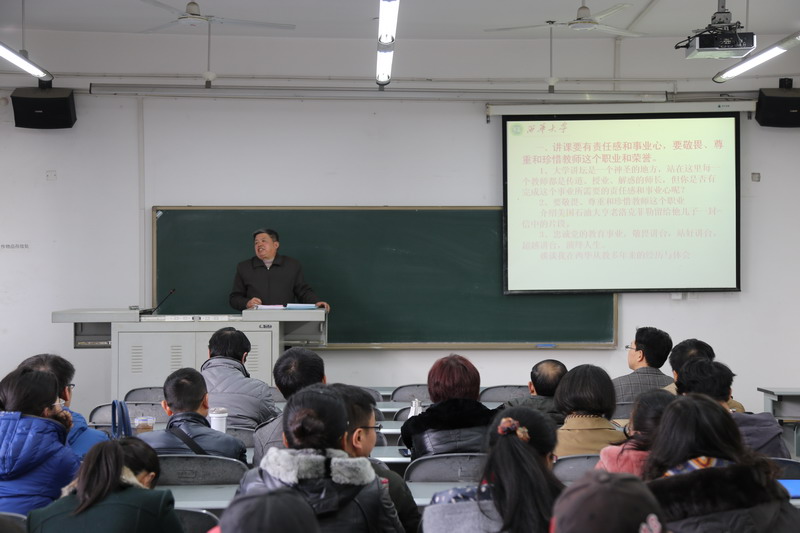12月18日下午2:30,电气信息学院邀请原校党委书记秦昌明教授在6C-321举办了“如何上好一堂课”主题讲座。学院全体教职工参加了本次讲座。讲座由学院党委书记董秀成主持。 首先,秦教授重点阐述了教学理念的重要性,根据自己的从教经历强调教师需要拥有完善的人格去引领学生,具备责任感与事业心,要敬畏、尊重和珍惜教师这份职业与荣誉。随后,秦教授强调老师需要为学生打造充满活力的学习课堂,提高学生们的学习积极性。教师不仅仅只传授书本上的知识,更要教会学生如何做人、如何学习、如何规划自己的大学生活。紧接着,秦教授提出教师需要具备先进的教学思想、科学的教学方法、创新的教学意识。讲课既要语言生动,又要活泼机敏,要有幽默感,最重要的是要树立学生的信心。 最后,本次讲座在老师们热烈的掌声中圆满结束。